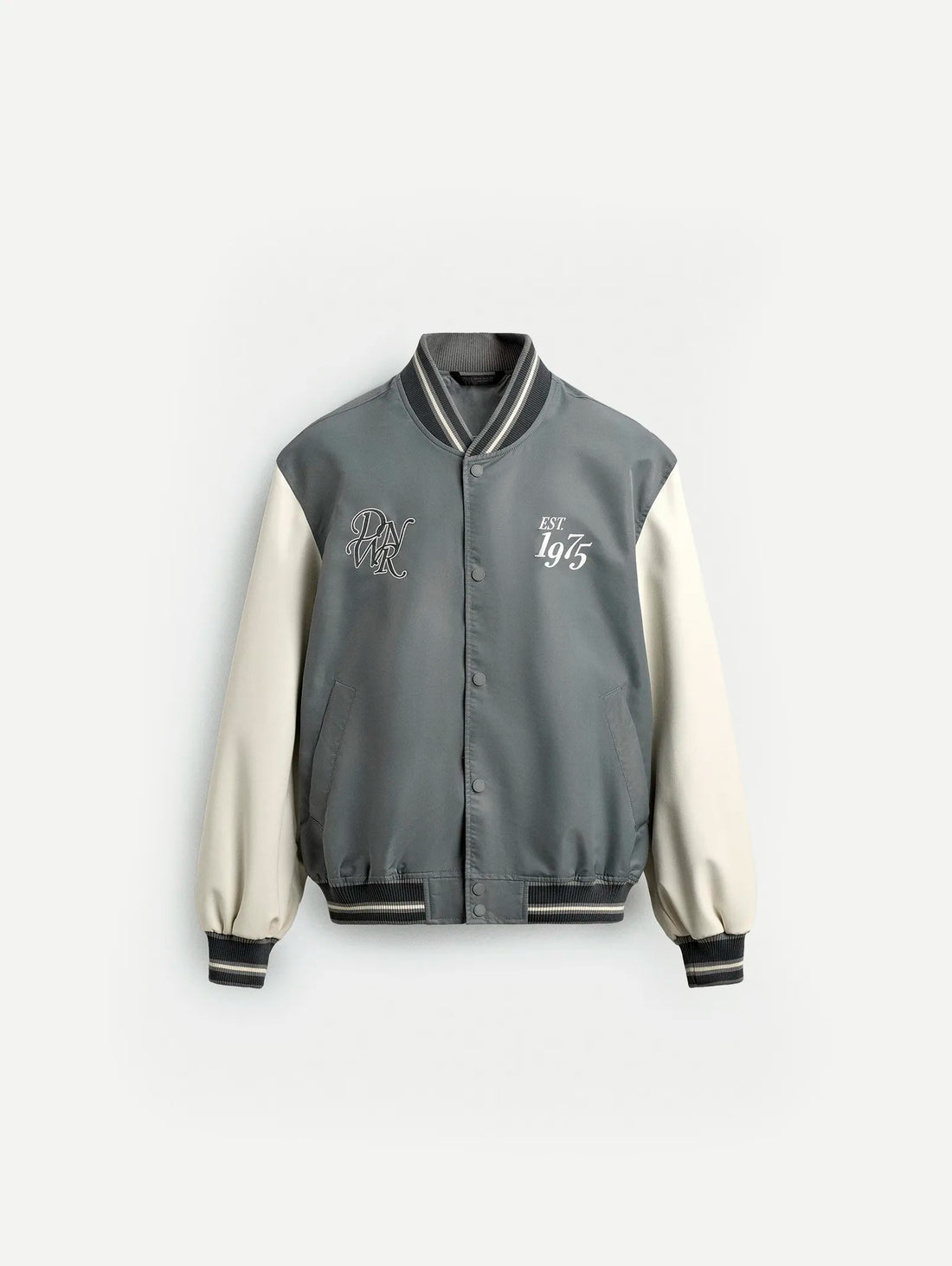 Zara Bomber Jack Bordados Em Contraste Cinzento