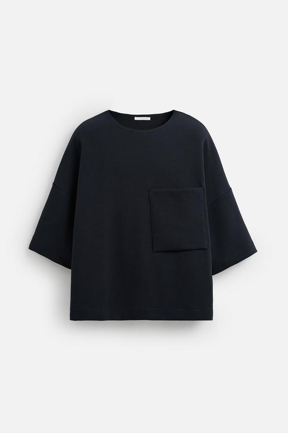 Zara Sweatshirt Tecnica Oversized Com Bolso Azul