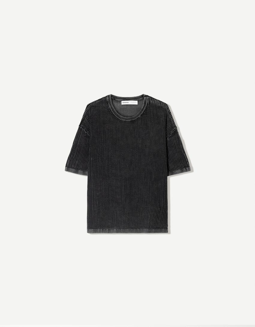 Bershka T-shirt De Manga Curta De Felpa Preta