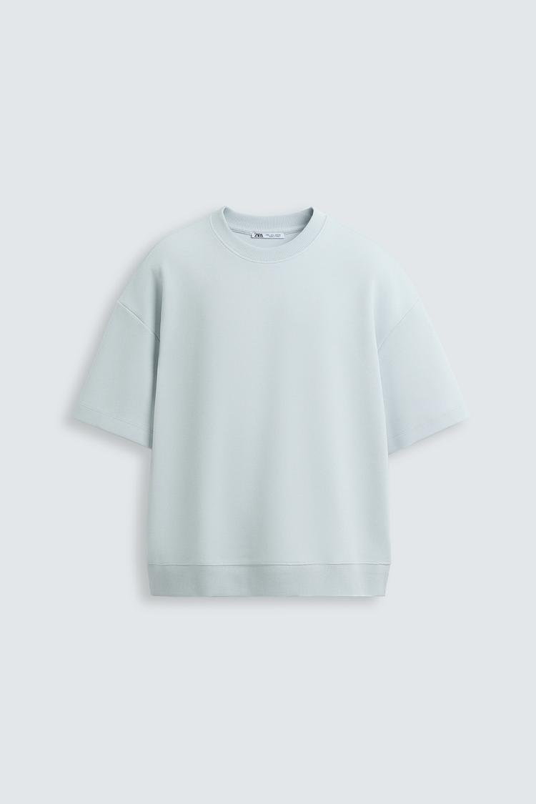 Zara T-shirt De Malha Com Estampado Em Estampado Em Contraste