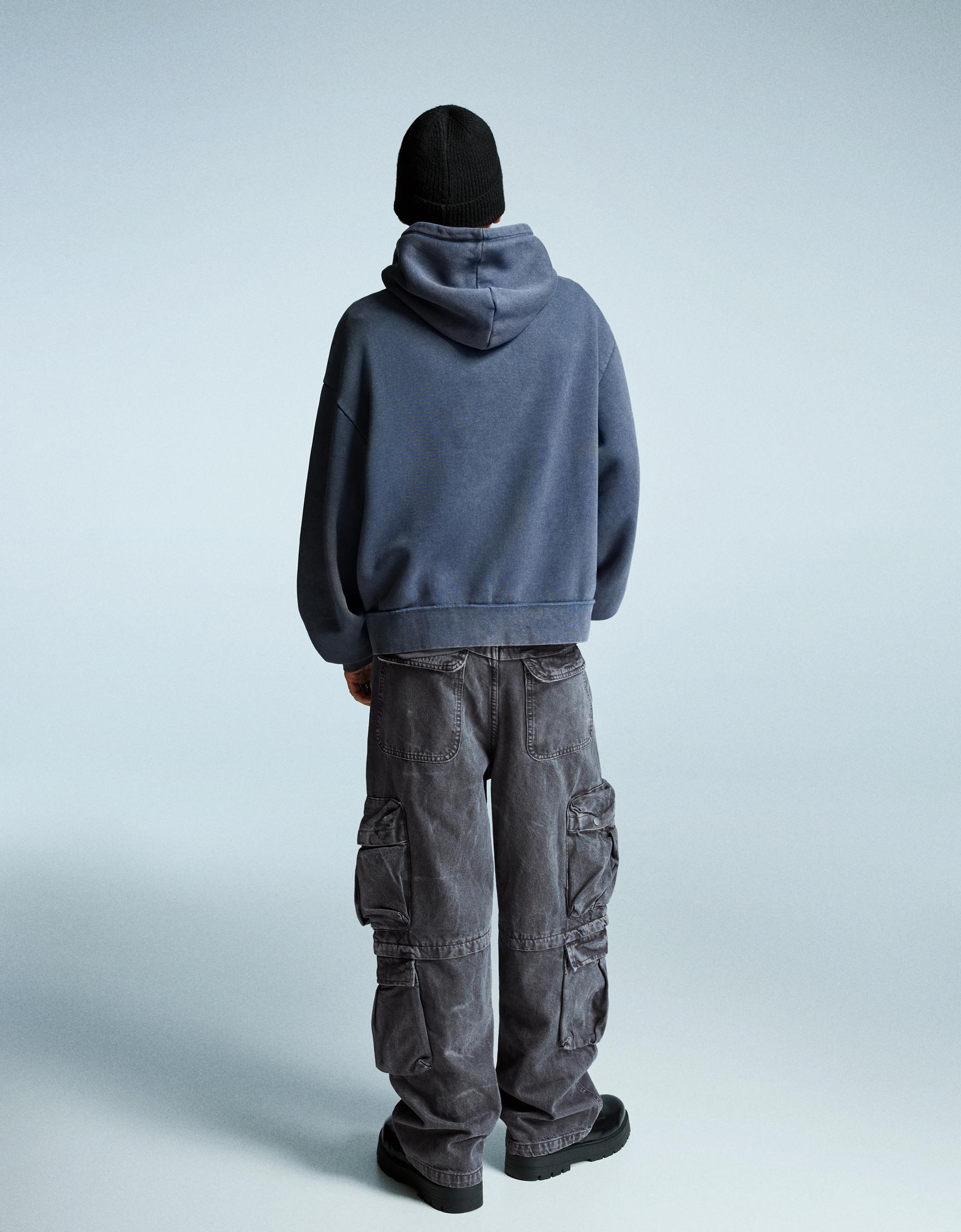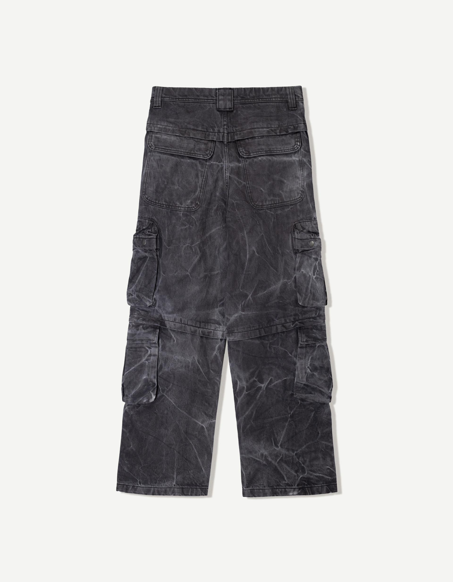 Bershka Calças Baggy Multicargo Acid Wash Preto