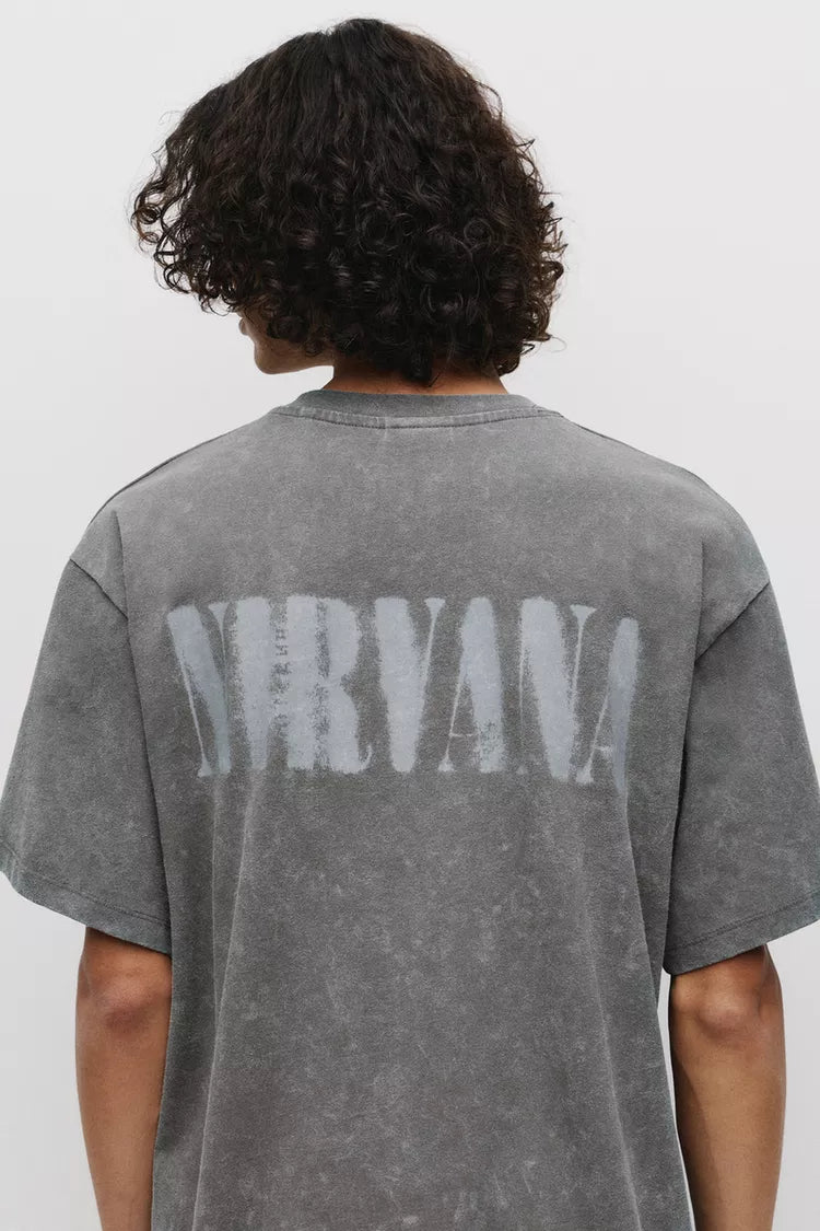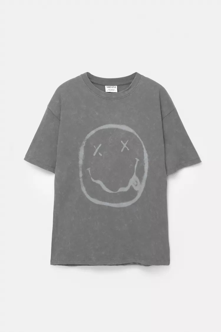 Pull&bear T-shirt Com Estampado Nirvana Smiley Cinzento