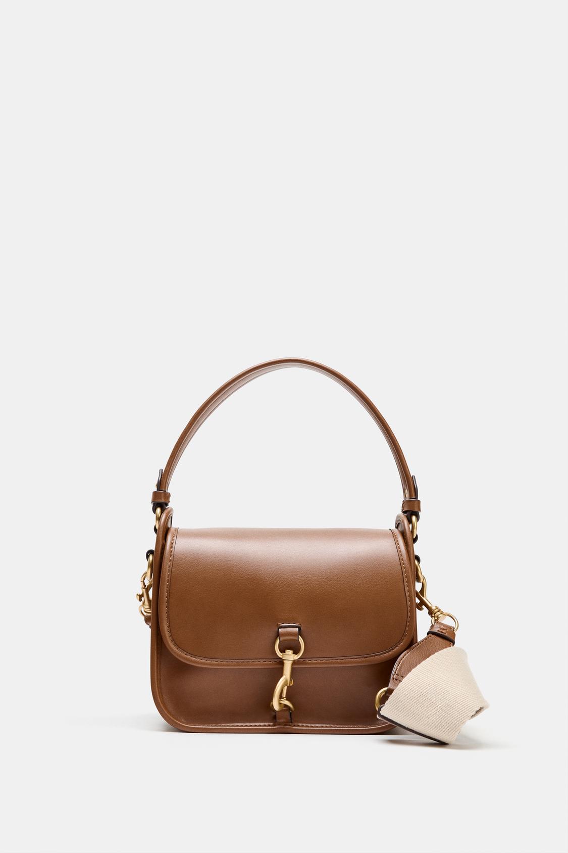 Zara Bolsa Tiracolo Com Promenor De Fecho Castanho