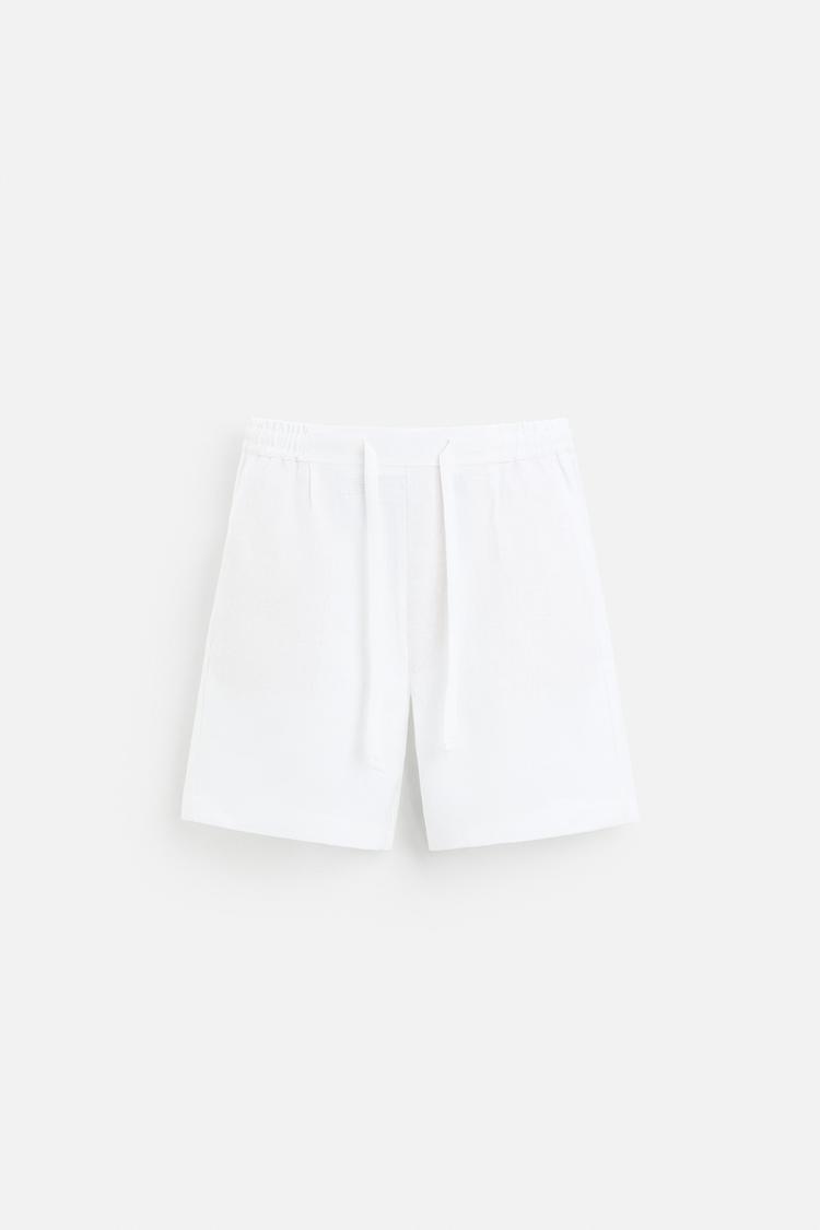 Zara Calções Bermuda 100% linho Branco