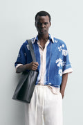 Zara Camisa Com Estamapdo Floral Azul