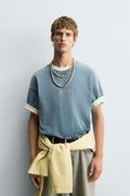 Zara T-shirt com Gráficos Azul Lavado