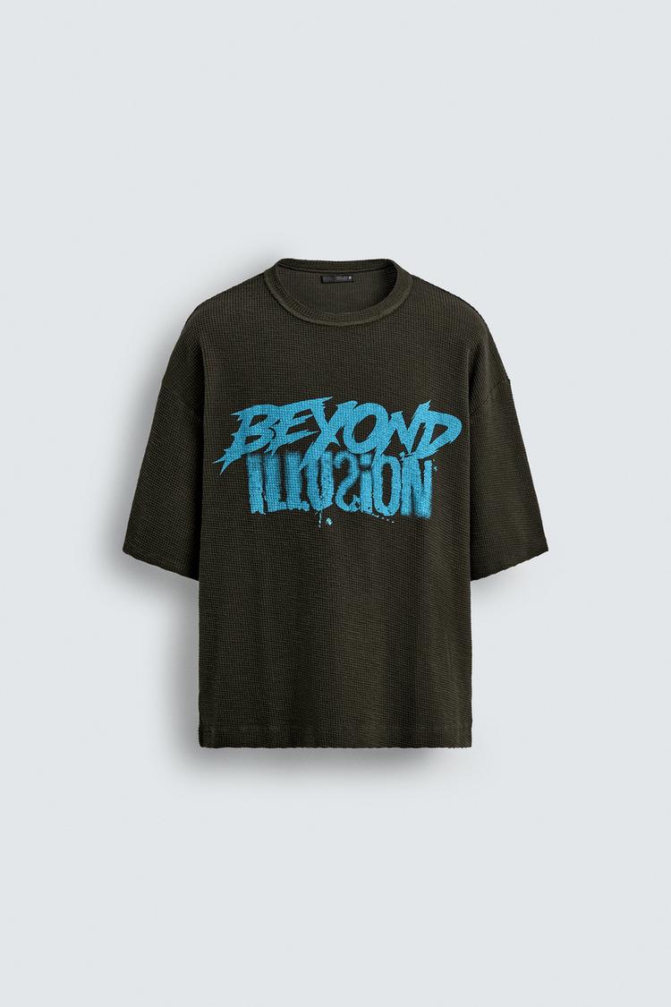 Zara T-shirt De Malha Com Estampado Em Estampado Em Contraste