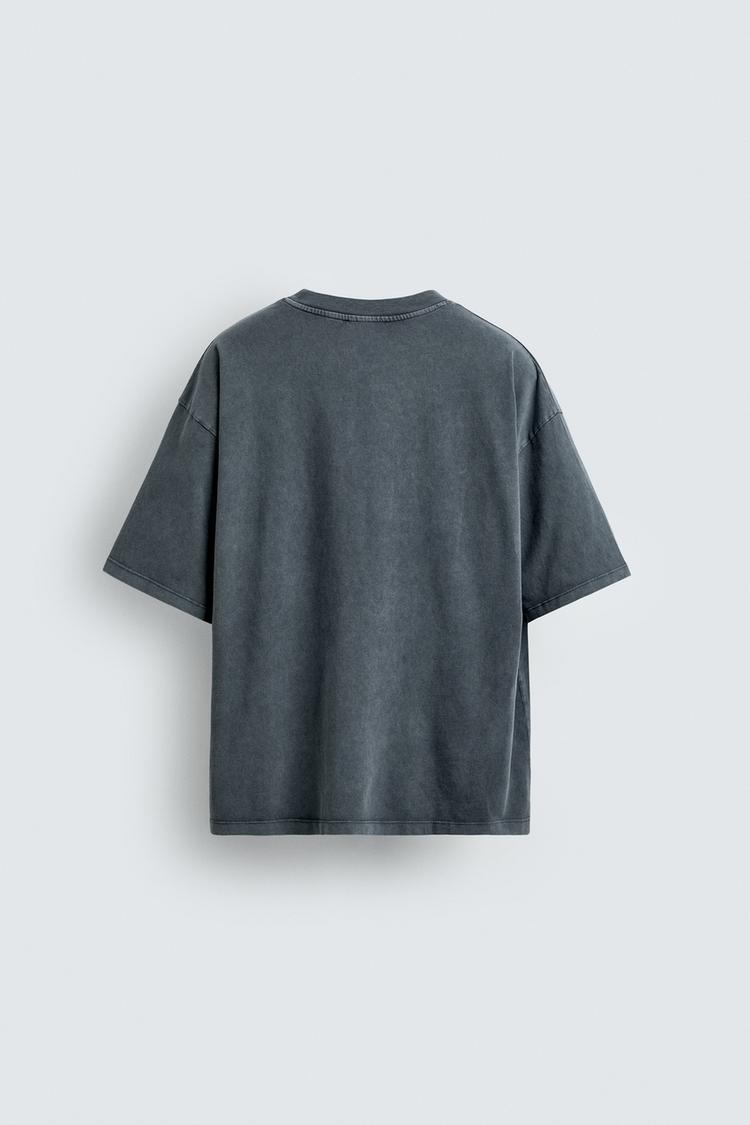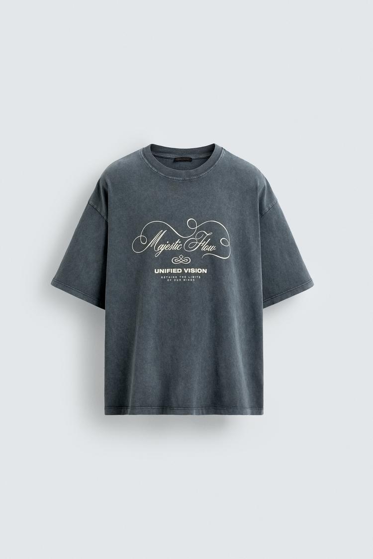 Zara T-shirt Estampado Lavado Cinzento